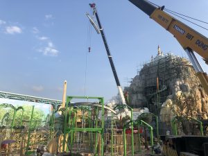 Pictured: Photo of crane lowering lift portion of Cloud Coaster track.