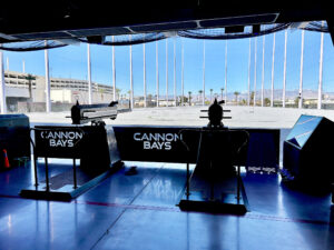 Situated exclusively at designated golf bays, guests can load a bucket of balls into the cannon system. Once the spring-loaded handles are pulled back, the cannons automatically charge their integrated air cells, signaled by a green light indicating readiness for launch. Guests can aim precisely using the cannon’s scope, enhancing the experience.