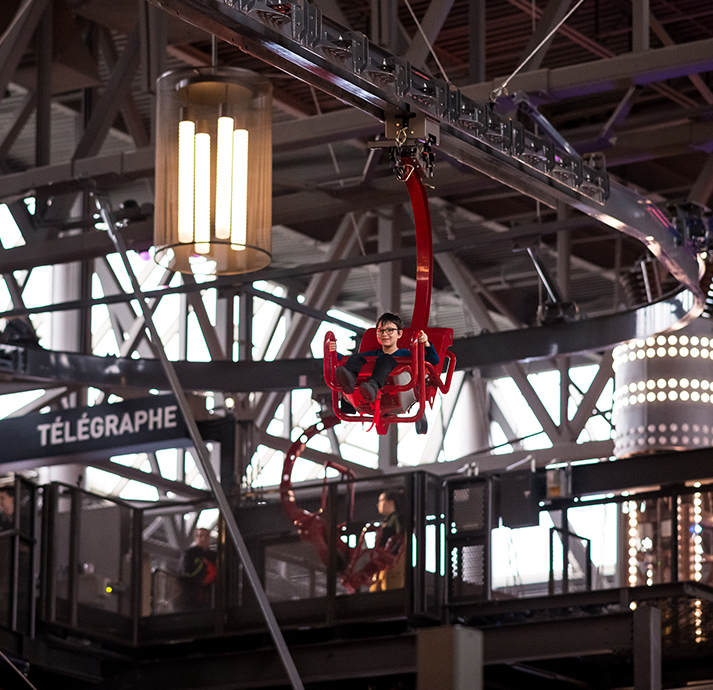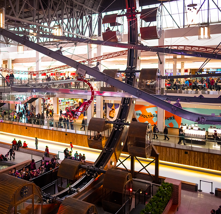 Mega Parc, is the largest indoor amusement park in Quebec and second largest in the nation. Oxford Property group relied upon Extreme Engineering to design a family friendly glider next to their existing Mack roller coaster. Our engineering team worked on the idea of making the Cloud Coaster soar through a spokeless Ferris Wheel.