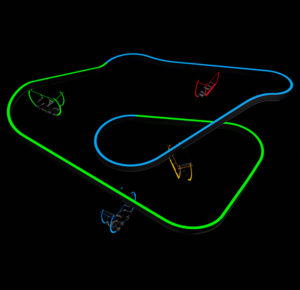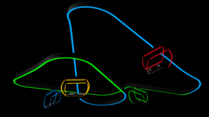 Pictured Above: All new Sky Tag™ is a fully interactive coaster for FECs and Small Parks. Illustration of Sky Tag™ and rendered track layout for 40 x 40 (1600 SQ FT) space.