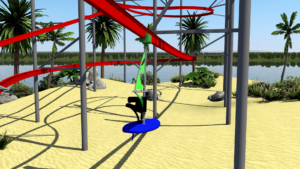Pictured Above: Surfing Tsunami™ rendering with stand up surf ride vehicle.