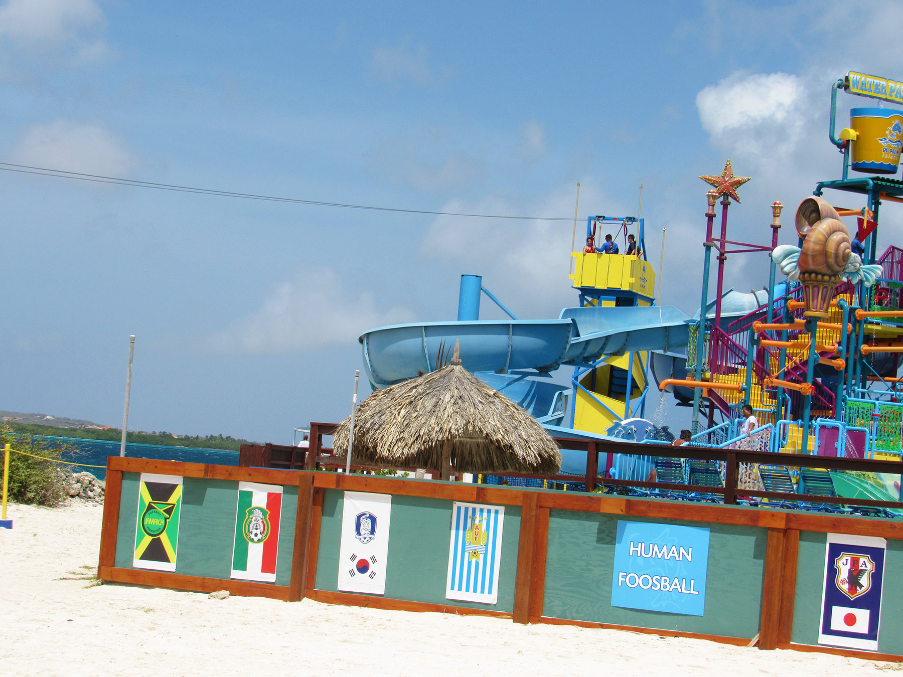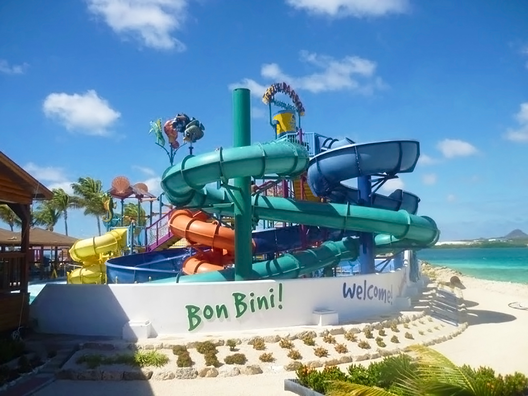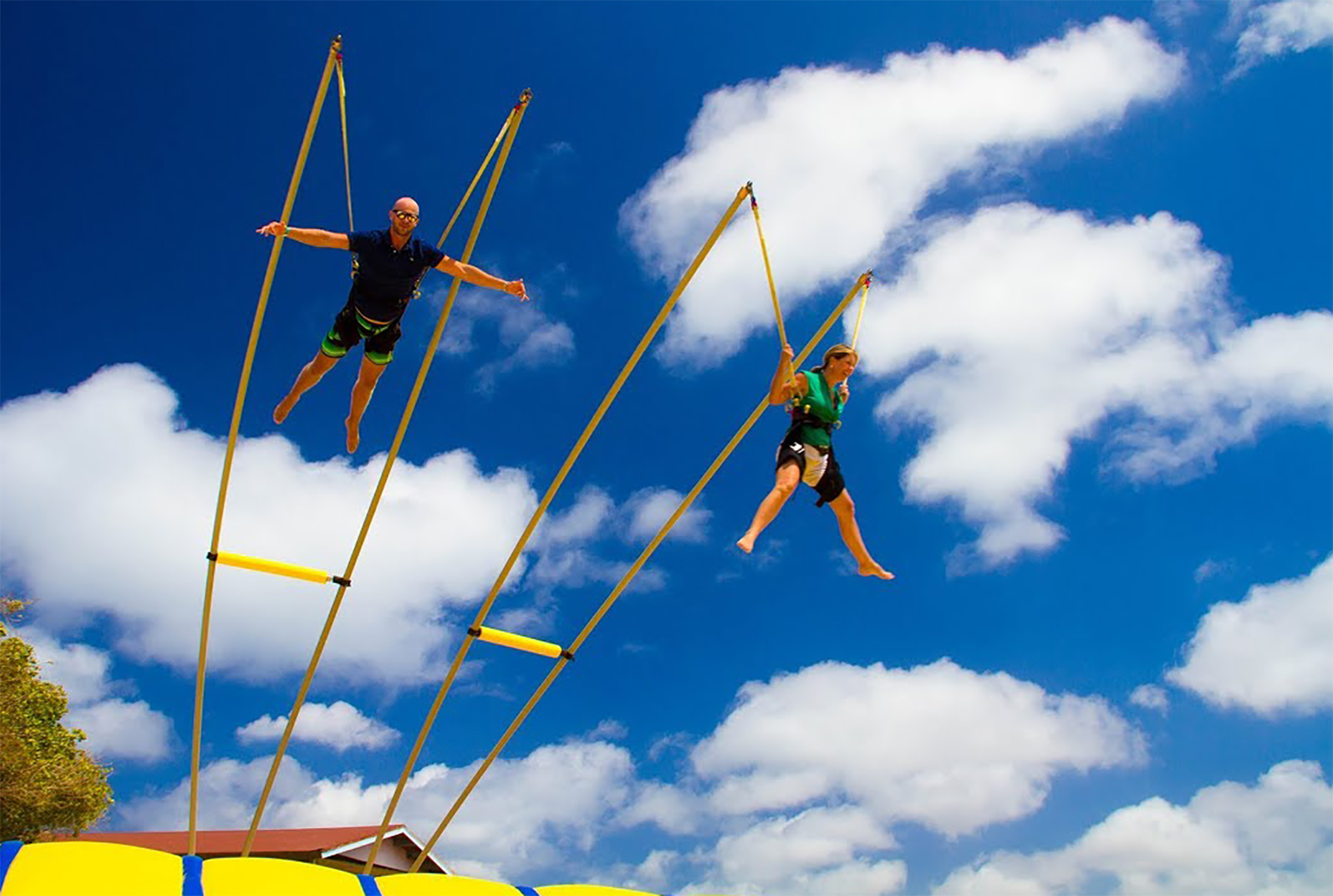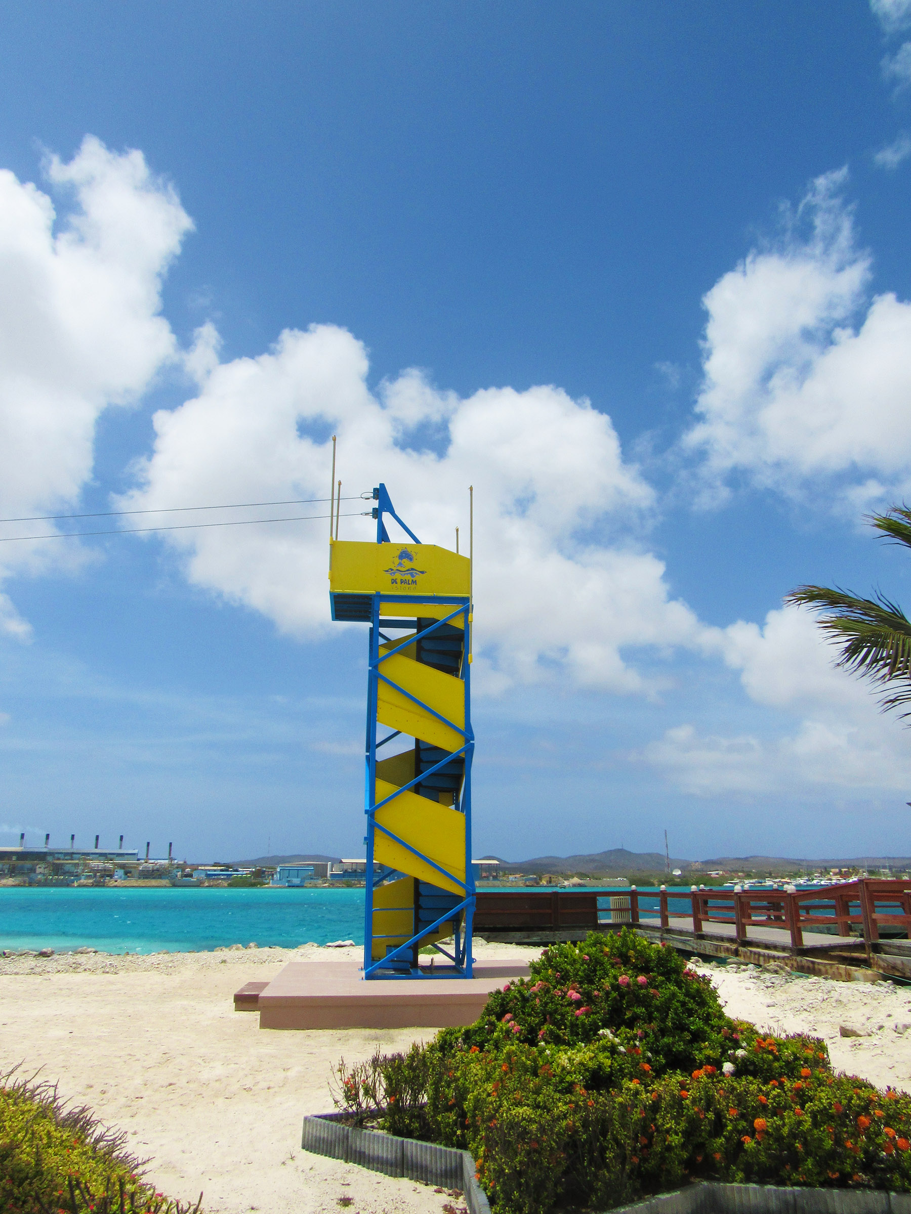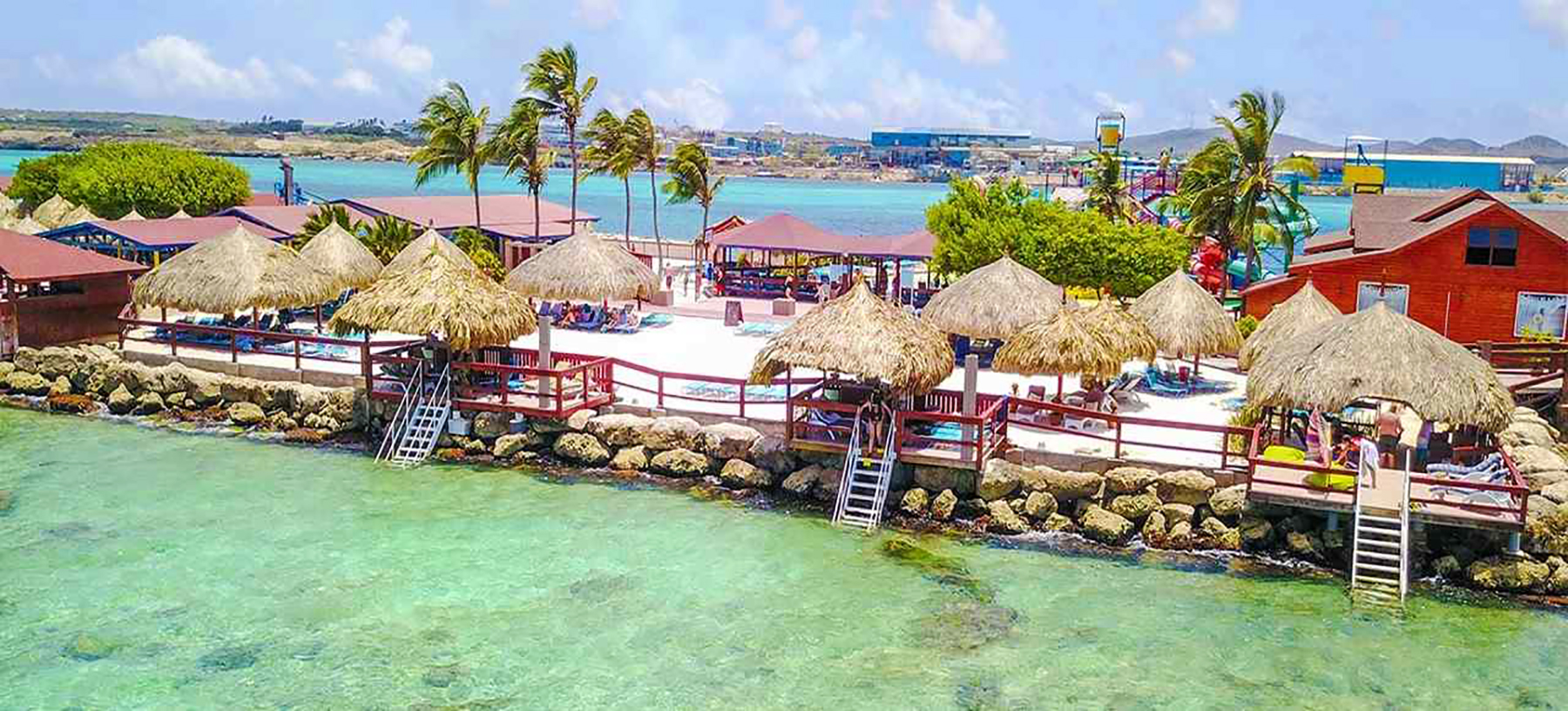 De Palm Island resorts hired Extreme Engineering’s design team, as they knew it would best suit their needs in terms of simplicity of operations and maintenance to the investment level in the attractions. Extreme Engineering worked very closely on the Aruba project, ensuring the right product mix to seamlessly fit with their existing waterpark and other amenities. Because this would be the only zipline, including an Extreme Air Jumper, in Aruba it was crucial on the placement of the attractions and also stylization. The design team placed the zipline right along the edge of the beach, giving zipliners a breathtaking, open ocean view below. The vibrant colors of the attractions were chosen to match De Palm’s company logo and blend in with the other colorful structures surrounding the island. Today De Palm Island Resorts is proud to claim the only zipline experience in Aruba.
