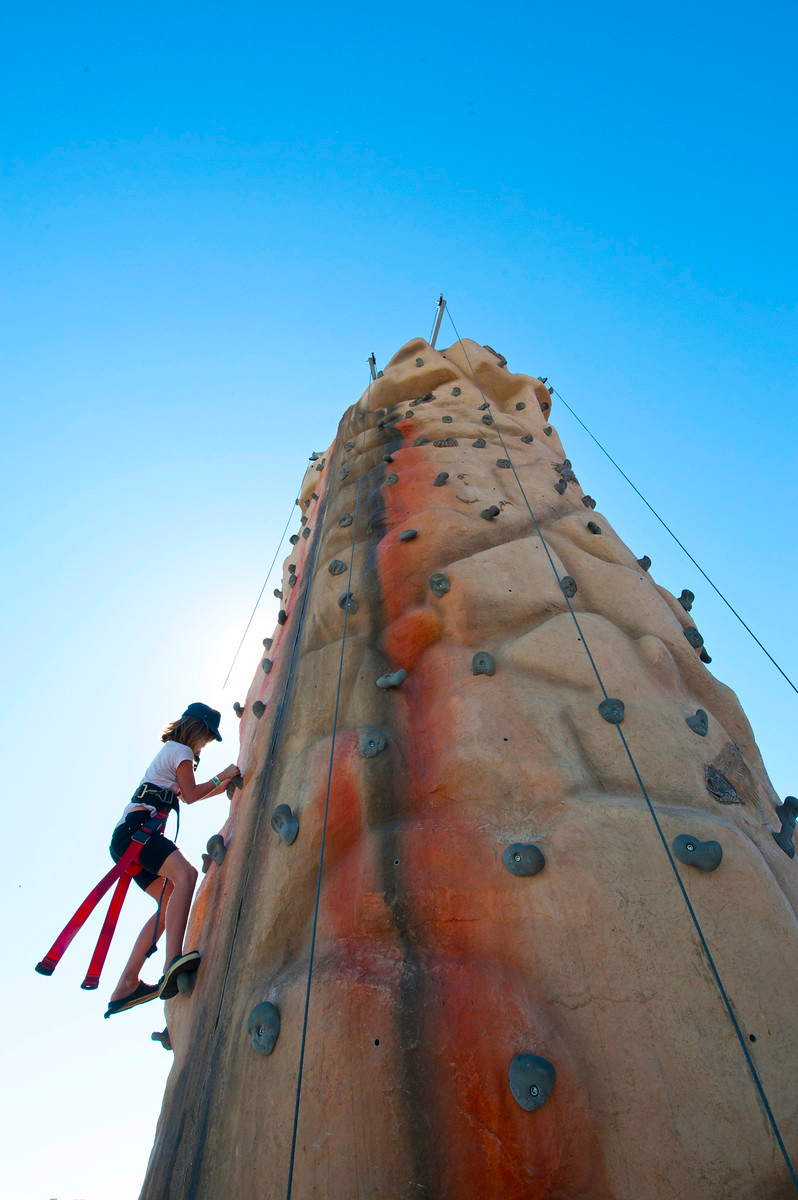 - Configure the rock climbing wall into either half or full tower systems, allowing up to 10 climbers at one time.