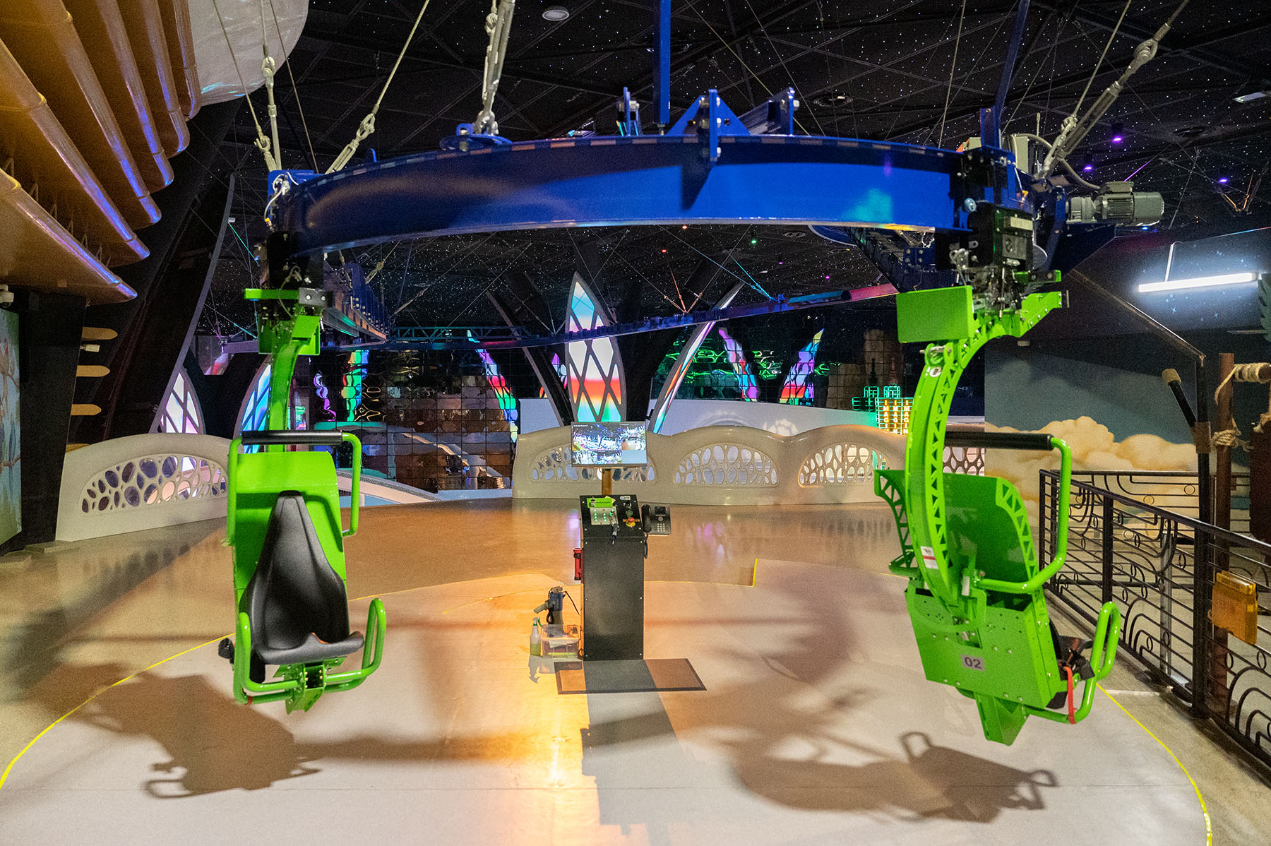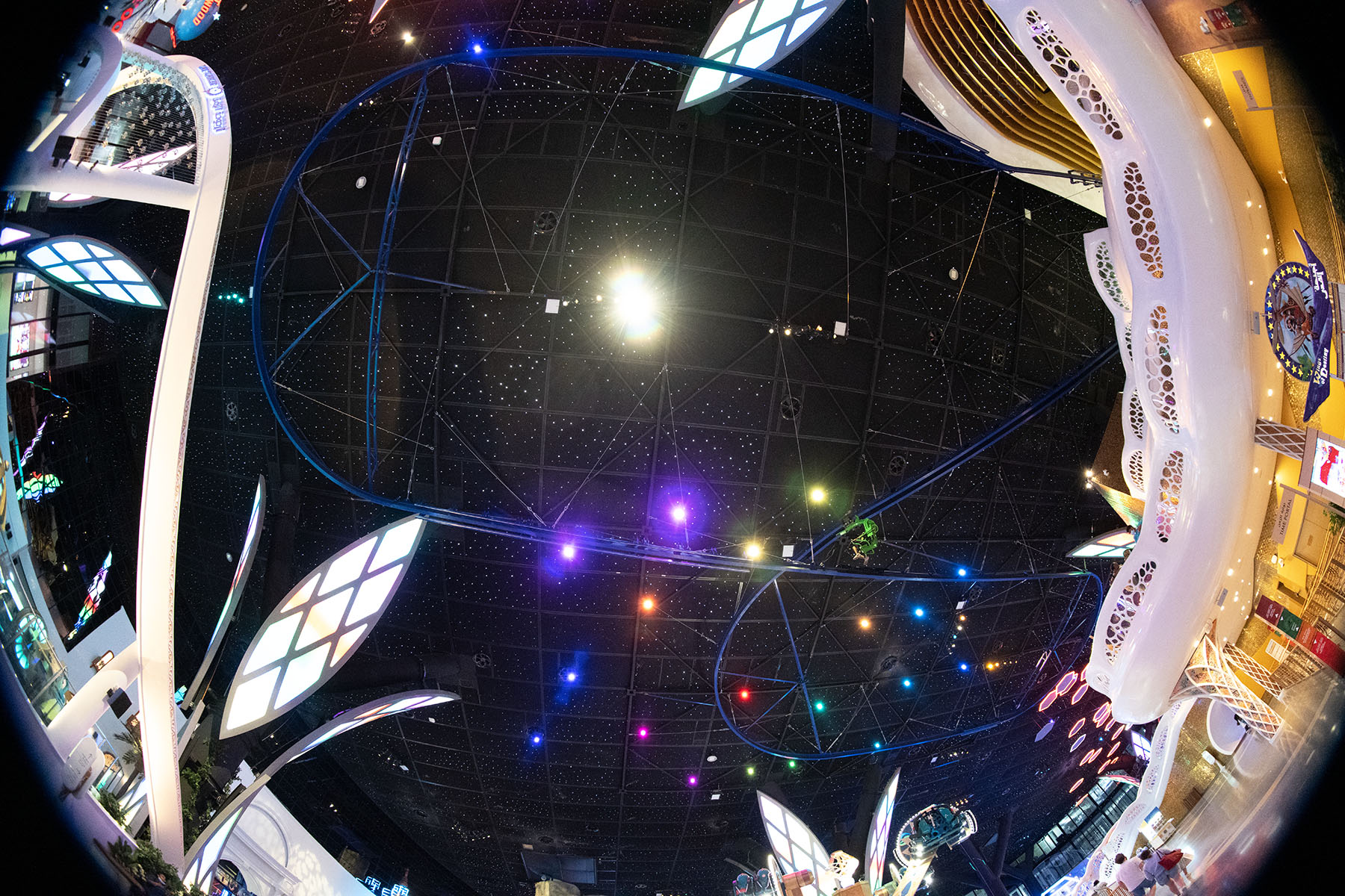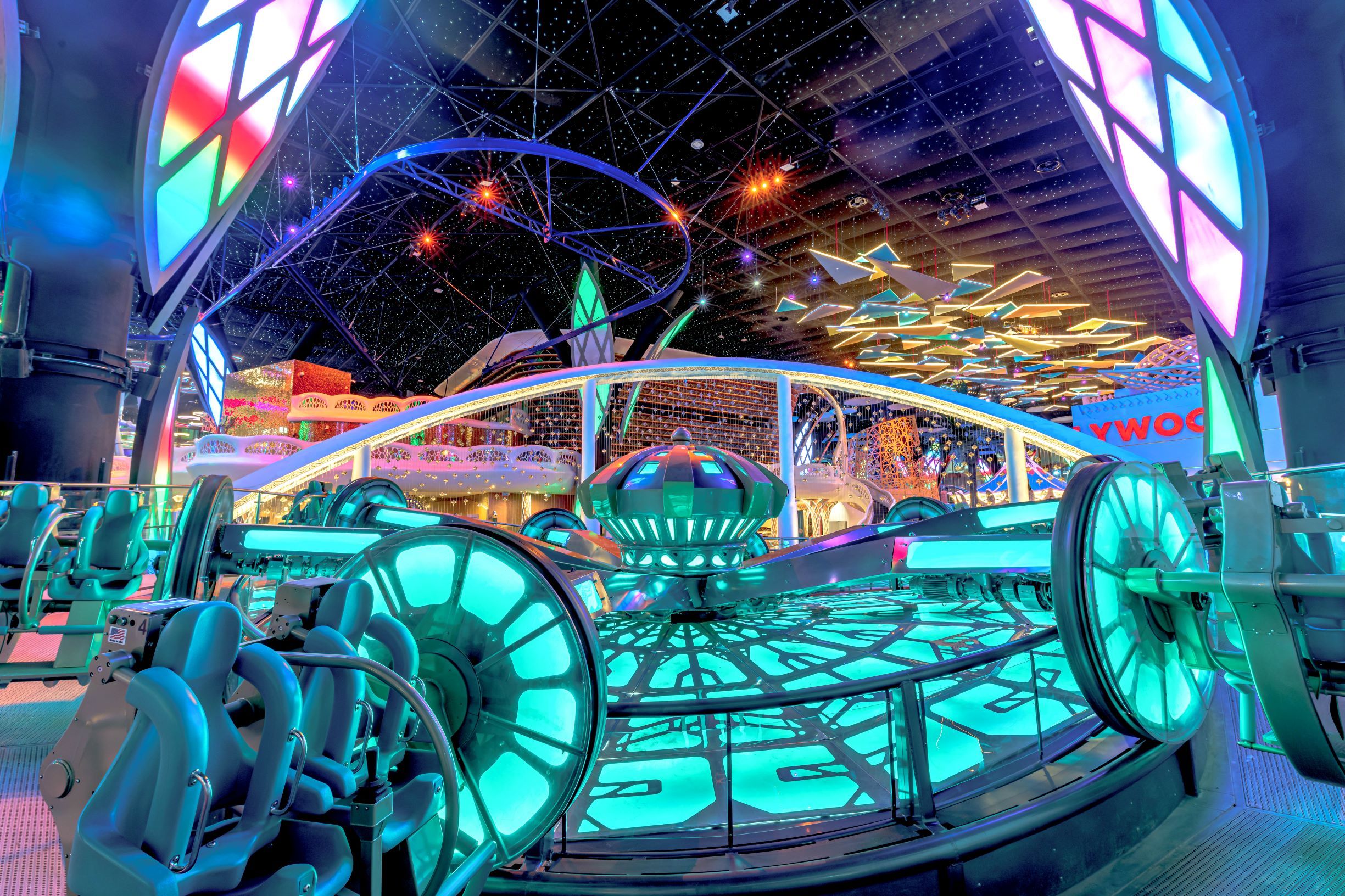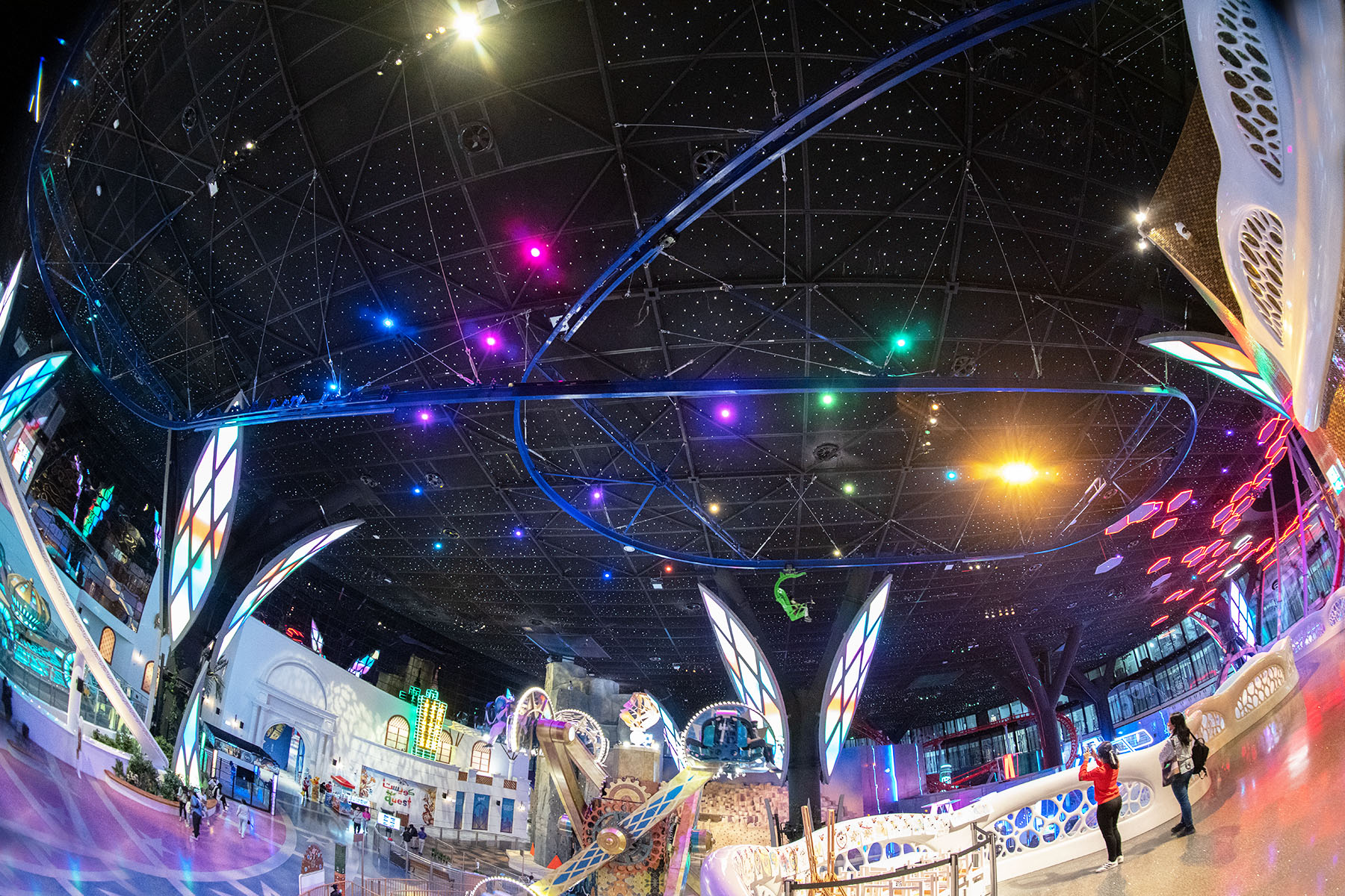 The Cloud Coaster for Doha Oasis’ park, Quest, is now open. This is the very first Cloud Coaster in Qatar and the largest indoor project in the world. Over 600 liner feet (over 200 meters) of floating roller coaster track launches guests above the amusement park below. The Cloud Coaster includes a raised platform for queuing. The suspended roller coaster was designed to be installed within the building’s infrastructure by eliminating the need, and additional costs, for large roller coaster columns. This coaster attraction was named “Fly With Flap,” an iconic tropical parrot park character named Flap. Extreme Engineering partnered with Nassal, an industry leading master planning company, on the project. Extreme Engineering was very excited to be apart of one of the largest indoor theme parks in the world. The Cloud Coaster utilizes a Class 3 ride vehicle, show control system, is ADA friendly, TUV compliant and can take riders as short as 40 inches tall.