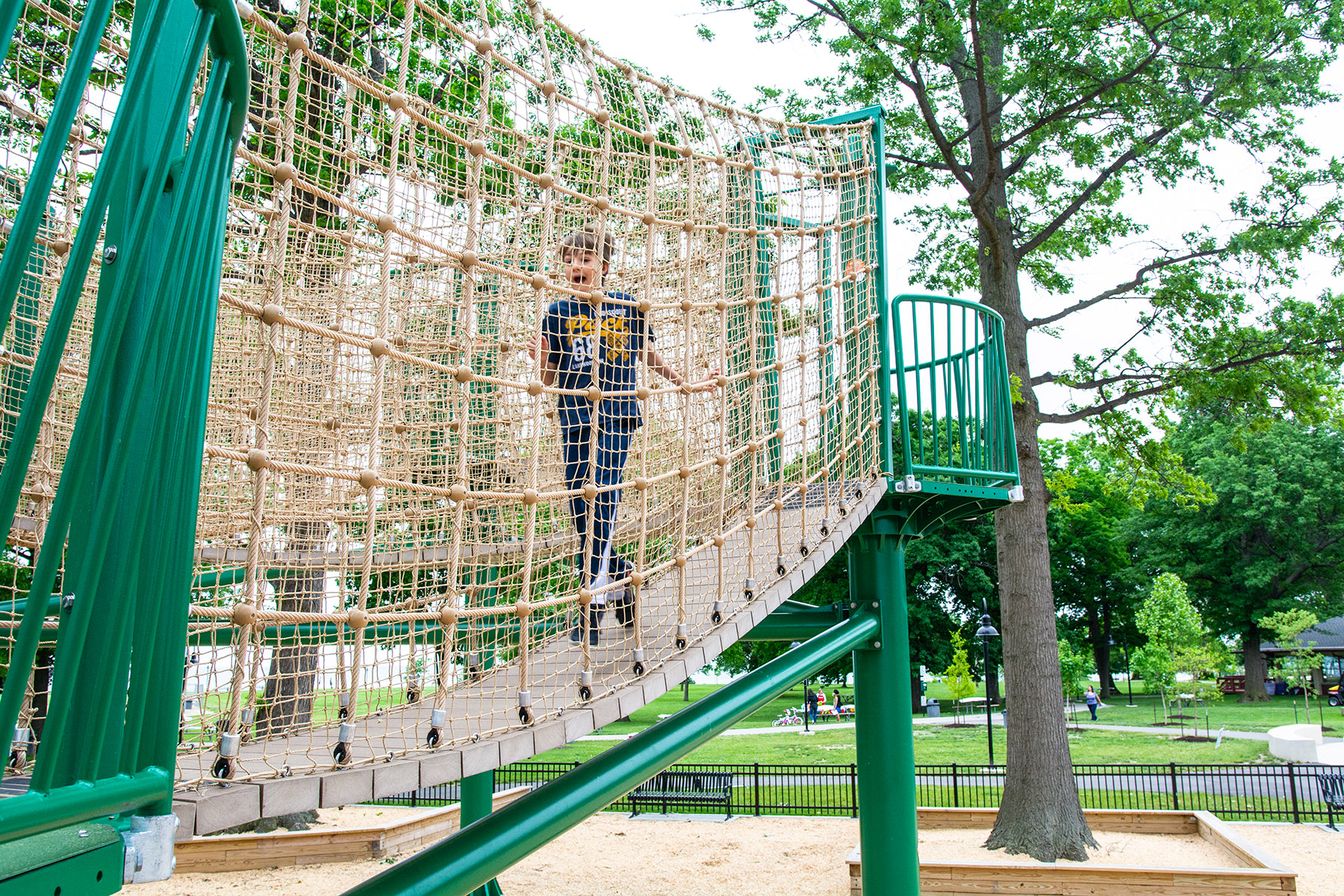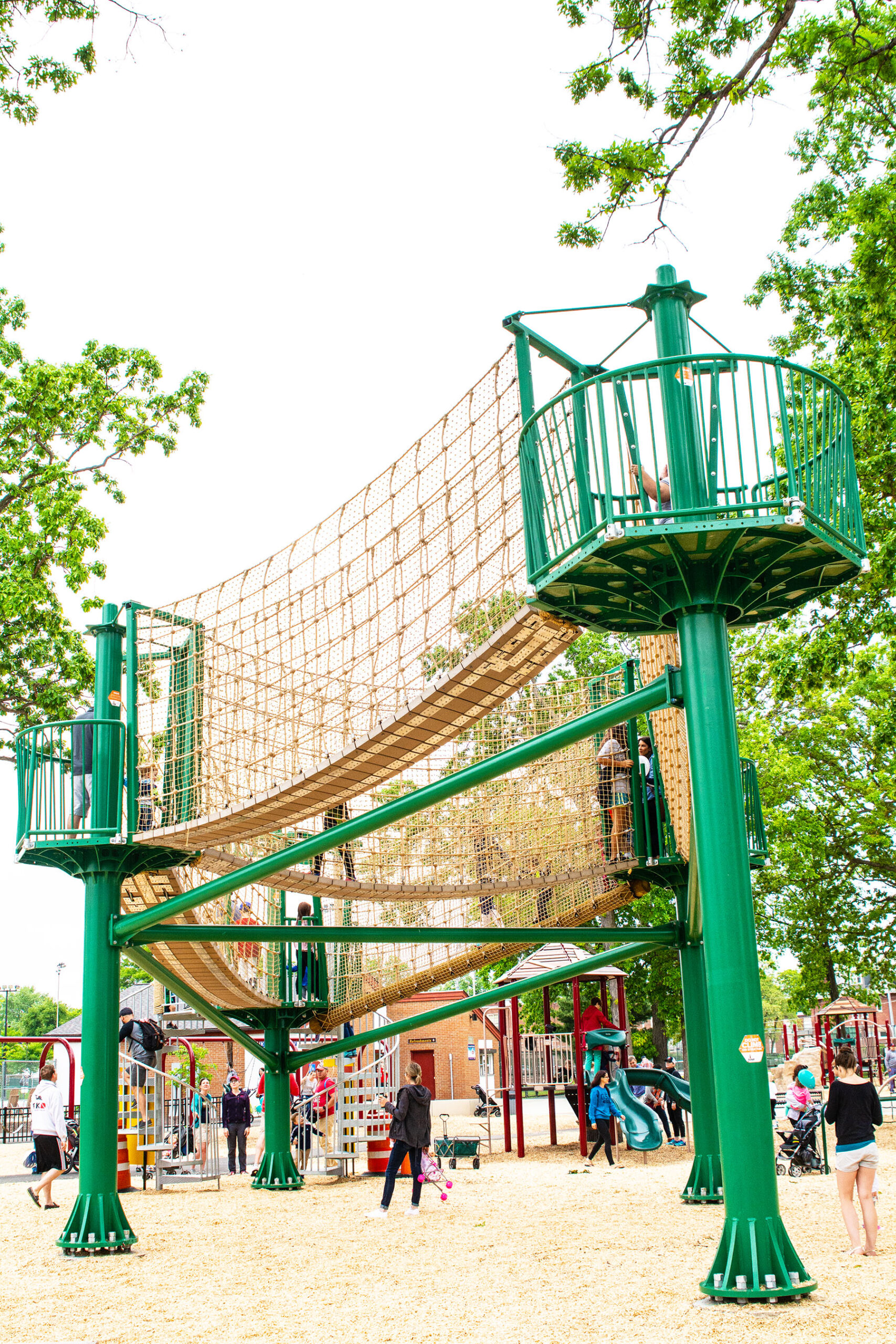 - This ropes course attraction is designed to offer a family-friendly solution without the use of cumbersome harnesses and safety gear that are required on traditional ropes courses.