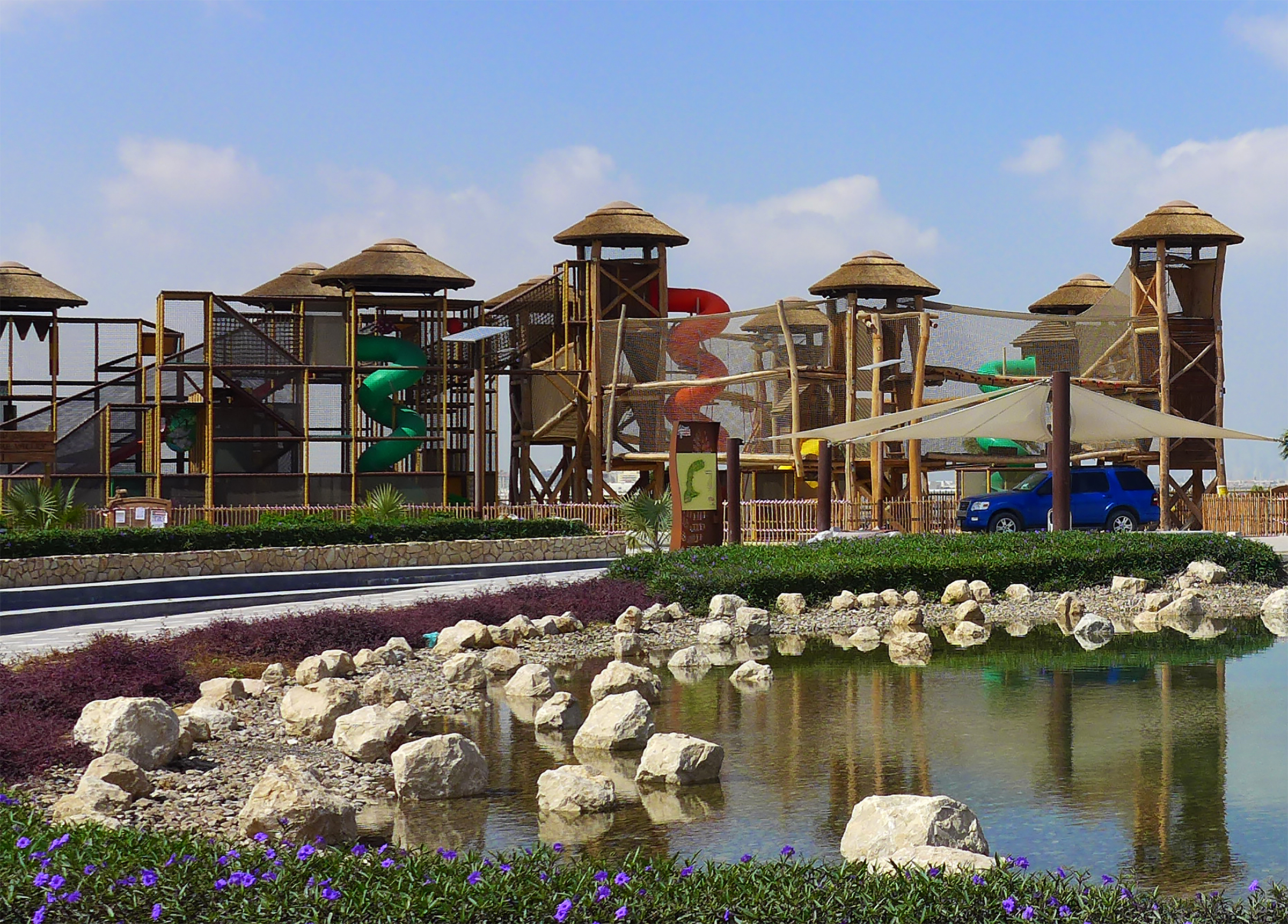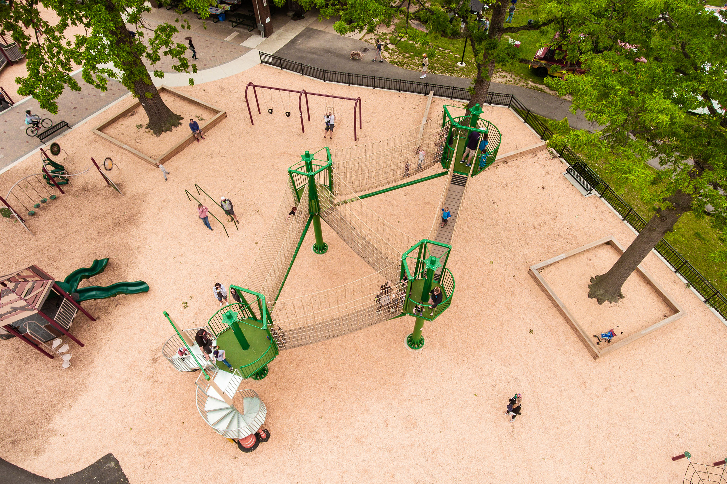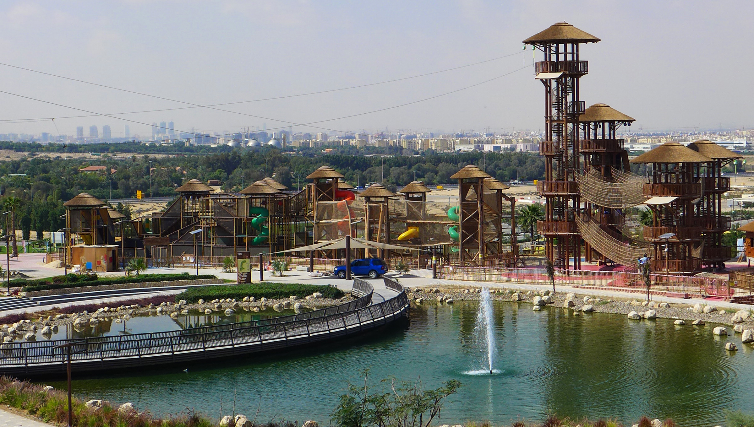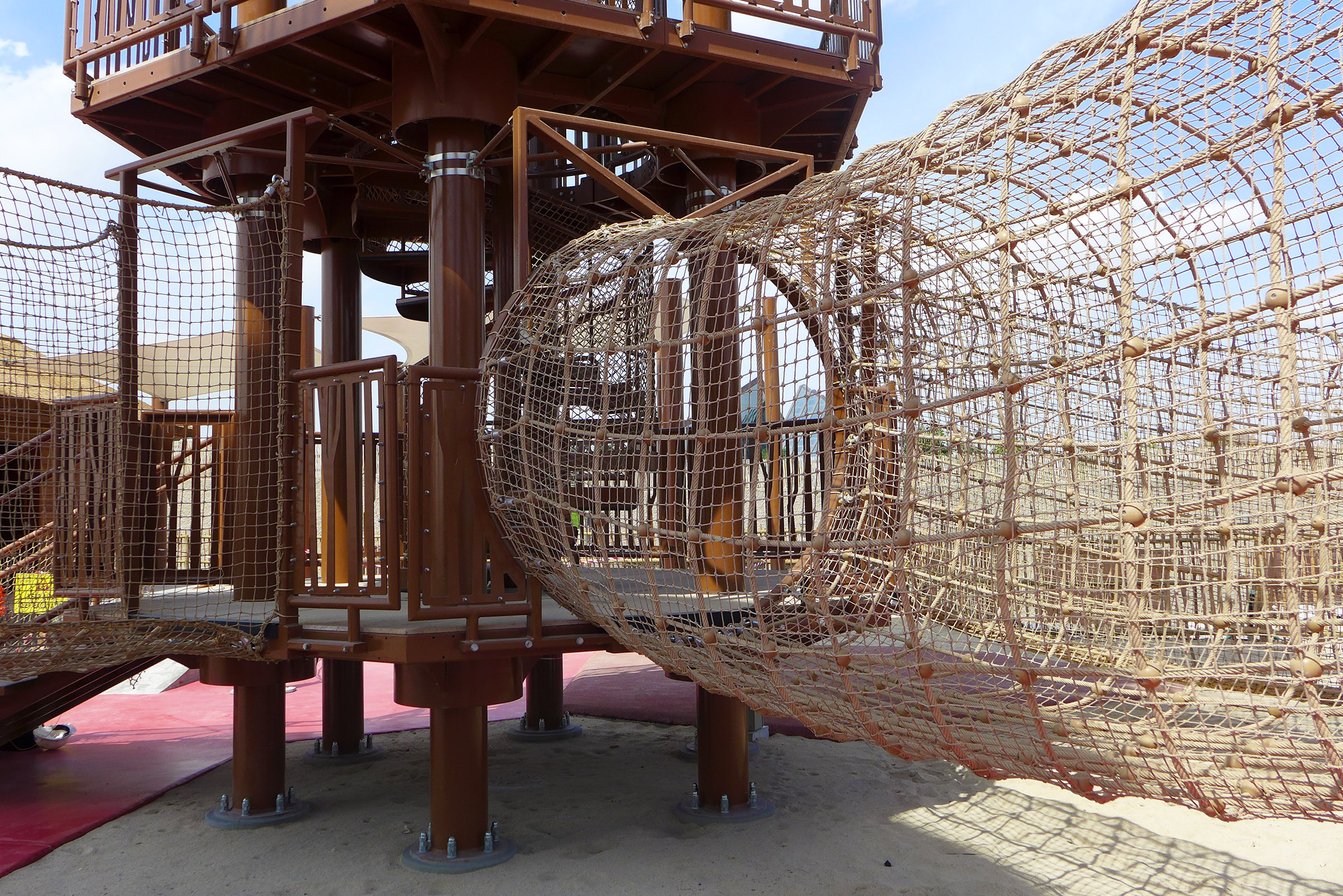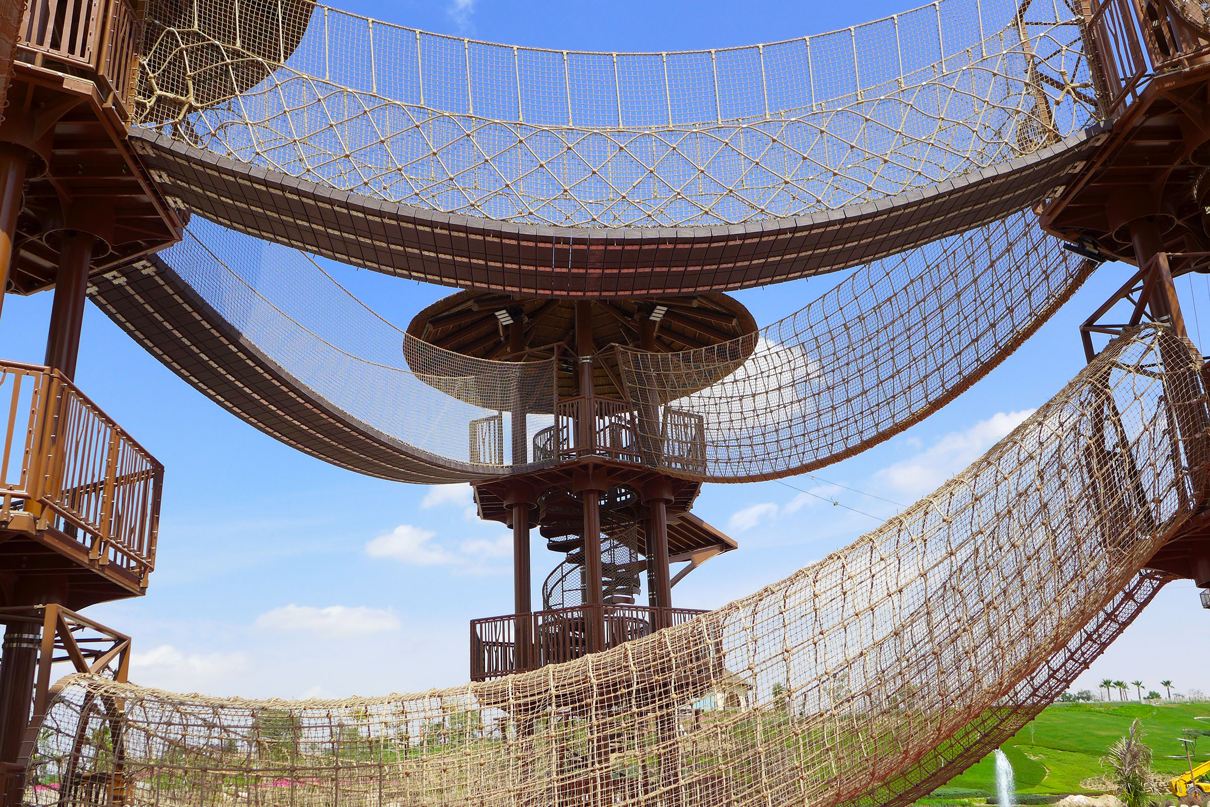 A safely contained adventure course high above the sky.