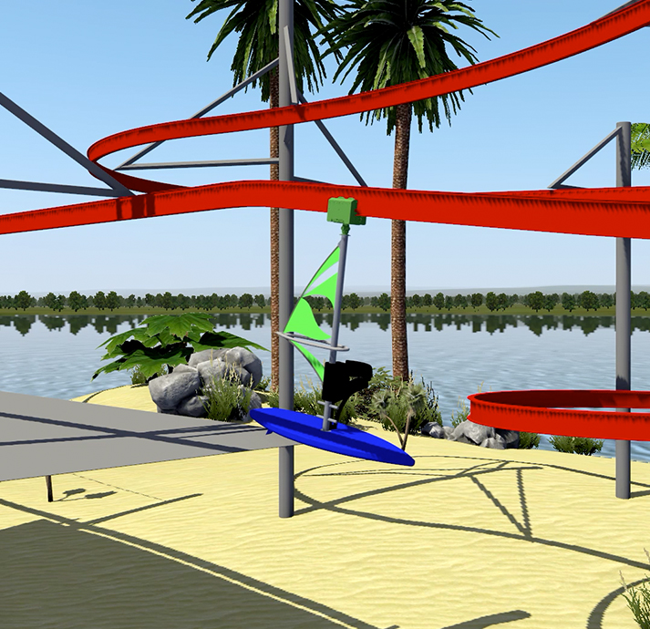 The Surfin Tsunami™ is the only award winning stand up surfboard roller coaster on the market. Riders instantly transform into surfers, gliding on a suspended roller coaster surf board with sharp turns, sudden drops and stops.